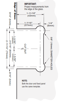 • Türverschluss für 8 bis 12 mm Glastüren, geeignet für Glas an Glas oder Wandanwendung. Der Türverschluss kann von beiden Seiten betätigt werden. Eine Lochbohrung von 22 mm im Glas erforderlich.