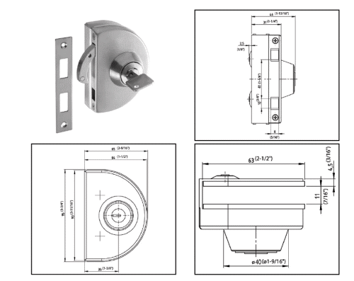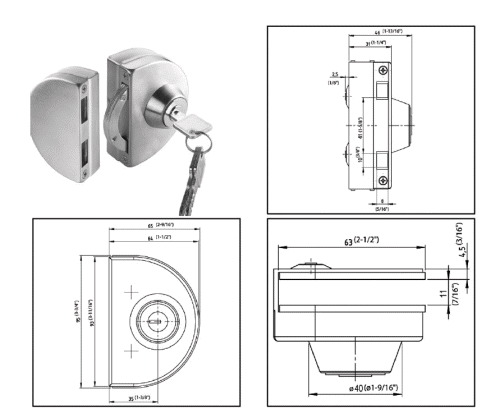 • Türschloss für Glastüren oder Glasvitrinen.