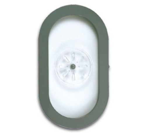 Durchsprecher und Durchreiche für Verglasungen bis 24 mm Glas. Der Durchsprecher ist aus Kunststoff silbergrau, mit Türflügel aus durchsichtigem Kunststoff.
